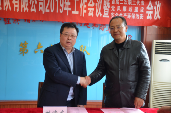 會上,劉曉東與公司所屬各單位(部門)簽訂了《2019年黨風(fēng)廉政建設(shè)責(zé)任書》和《2019年安全生產(chǎn)與治安保衛(wèi)工作目標(biāo)責(zé)任書》,王和平與公司各經(jīng)營單位負責(zé)人簽訂了《2019年經(jīng)營目標(biāo)責(zé)任書》。
