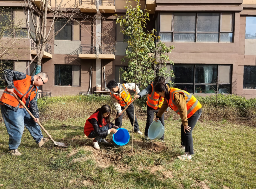 活動現(xiàn)場大家分工協(xié)作,三五成組揮鍬挖坑、扶苗澆水,現(xiàn)場充滿歡聲笑語,洋溢著團結協(xié)作、昂揚向上的良好氛圍。經(jīng)過一上午的努力,一棵棵新栽下的苗木亭亭玉立,在明媚的陽光中孕育著綠色發(fā)展的新希望。