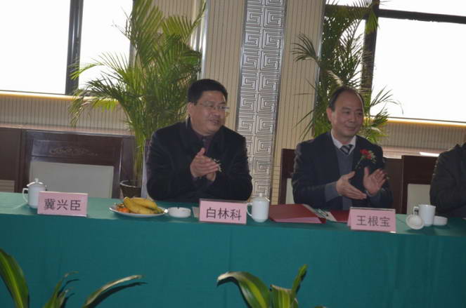 白林科副總經(jīng)理和王隊(duì)長鼓掌祝賀簽約圓滿成功