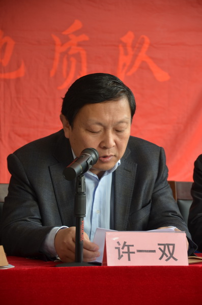 會(huì)議由隊(duì)黨委委員、隊(duì)長(zhǎng)王根寶主持。西安市國(guó)資委黨委副書記兼紀(jì)委書記許一雙、西安市國(guó)資委正處級(jí)調(diào)研員胡國(guó)強(qiáng)、省地礦總公司黨委副書記兼工會(huì)主席吳學(xué)海、省地礦總公司工會(huì)常務(wù)副主席兼黨群工作部主任王建洲、省地礦總公司黨群工作部主辦科員姚鵬等上級(jí)領(lǐng)導(dǎo)出席了大會(huì)。許一雙副書記、吳學(xué)海副書記分別在會(huì)上作了講話。