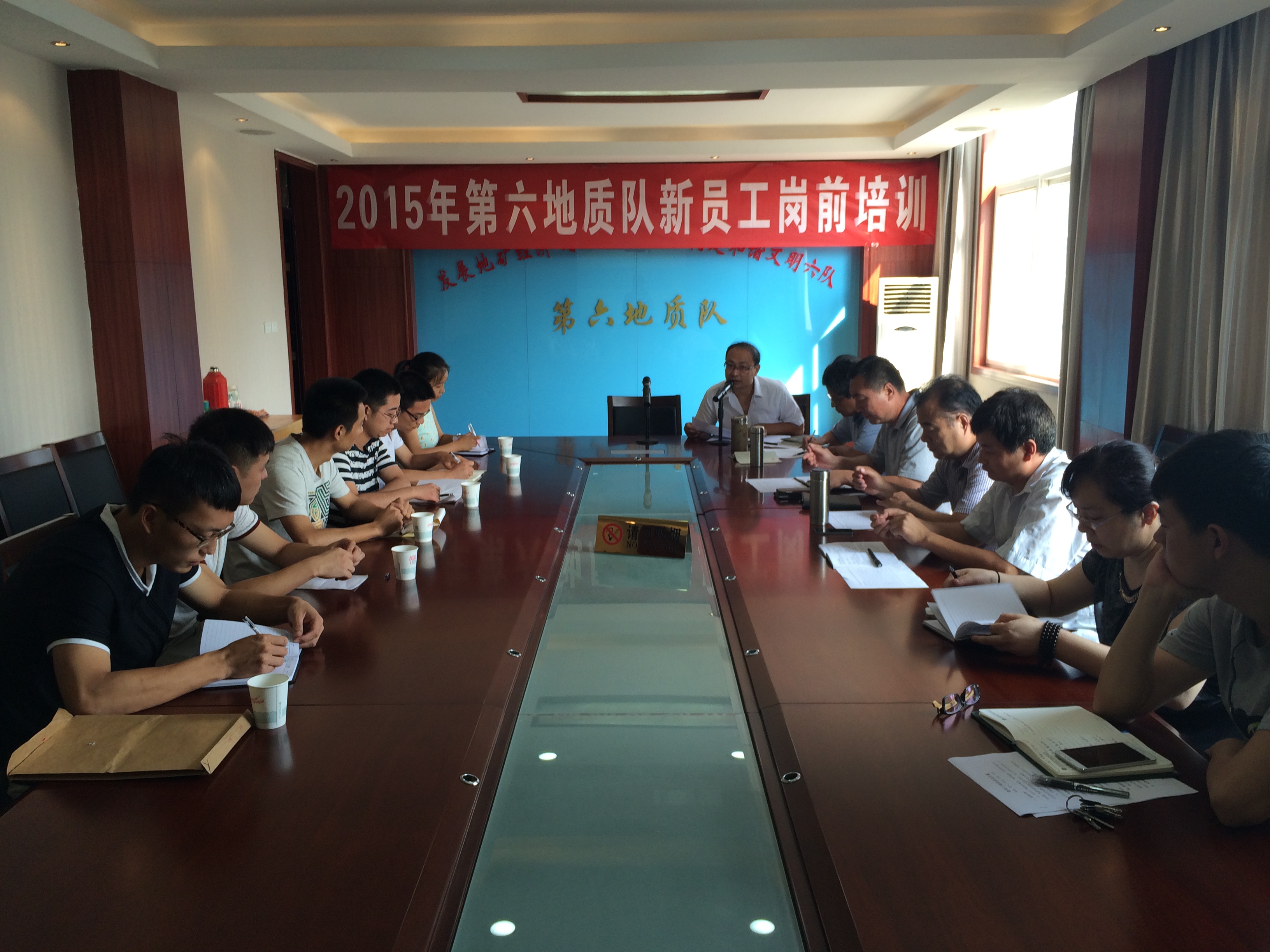 7月27日至28日,我隊舉行了“2015年新員工崗前培訓”活動。黨委書記王戰(zhàn)社及總工、副隊長、紀委書記、隊長助理等領導出席活動并講話。王戰(zhàn)社書記首先對大家加入六隊這個大家庭表示熱烈的歡迎,并對新員工提出五點希望和要求:一是希望大家做好吃苦準備,樹立艱苦奮斗精神;二是要多學習,在學習中尋求個人發(fā)展、進步;三是盡快了解隊情、行情;四是傳承地礦人“三光榮”精神;五是提高個人修養(yǎng),建立良好的人際關系。