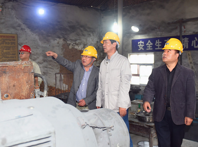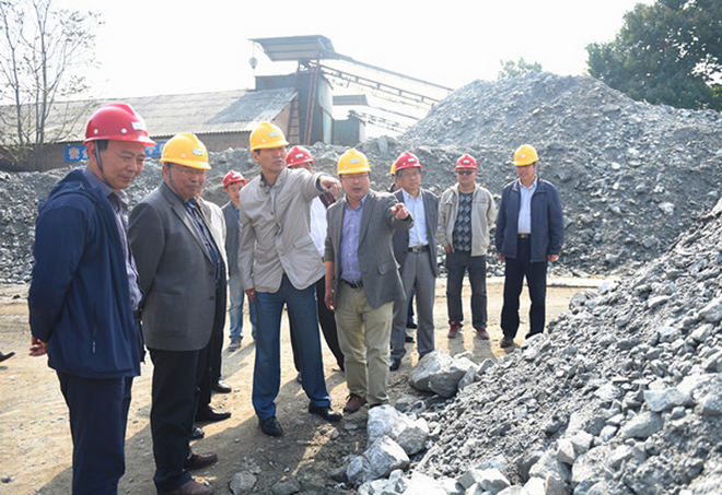 隨后,趙董事長(zhǎng)一行在隊(duì)長(zhǎng)劉曉東、隊(duì)黨委書記王戰(zhàn)社和總工白和的陪同下驅(qū)車前往我隊(duì)潼關(guān)興地公司秦泰選廠。趙董事長(zhǎng)來(lái)到礦石堆場(chǎng),蹲下身子仔細(xì)察看礦石品位,詢問(wèn)礦山開(kāi)采情況,走進(jìn)車間檢查生產(chǎn)加工及設(shè)備運(yùn)轉(zhuǎn)情況。向選廠負(fù)責(zé)人了解職工收入,叮囑要牢固樹(shù)立安全生產(chǎn)意識(shí);與新聘大學(xué)生親切交談,關(guān)心他們的工作生活,勉勵(lì)大家安心工作。趙董事長(zhǎng)還走進(jìn)興地公司黨員活動(dòng)室,檢查黨支部“兩學(xué)一做”學(xué)習(xí)教育開(kāi)展情況,翻看黨員學(xué)習(xí)筆記,并就深入開(kāi)展學(xué)習(xí)教育提出了要求。
