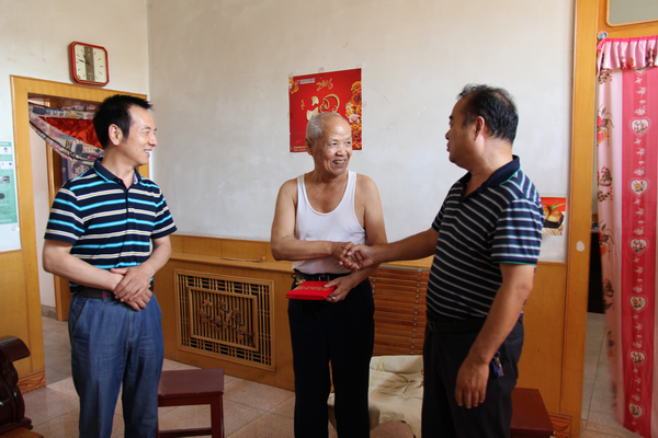 車(chē)剛剛停下,黨委書(shū)記王戰(zhàn)社與老專(zhuān)家黨永順的兩只手就緊緊的握在一起。王書(shū)記深情的說(shuō),我代表隊(duì)黨委來(lái)看望老專(zhuān)家,你身體還好吧?這樣熱的天要注意防暑降溫??!老專(zhuān)家動(dòng)情的說(shuō),我身體很好,組織的關(guān)心關(guān)愛(ài)猶如夏日里的徐徐涼風(fēng),我倍感神清氣爽、、、、、兩人一邊聊著便走進(jìn)了老專(zhuān)家的上房(渭北農(nóng)村一般把蓋在院內(nèi)最里靠上,地基高出兩側(cè)廂房的房屋叫做上房)。王書(shū)記向老專(zhuān)家黨永順同志介紹了隊(duì)上的當(dāng)前經(jīng)濟(jì)發(fā)展情況,以及在新常態(tài)下,礦產(chǎn)開(kāi)發(fā)、地質(zhì)項(xiàng)目、工程施工產(chǎn)業(yè)目前所面臨的挑戰(zhàn)。簡(jiǎn)單介紹了開(kāi)展“兩學(xué)一做”黨員學(xué)習(xí)教育情況。希望老專(zhuān)家在身體許可的條件下,到隊(duì)上走一走、看一看、聽(tīng)一聽(tīng)近年來(lái)隊(duì)上的改制發(fā)展變化,特別是要給年輕一代地質(zhì)人講一講老地質(zhì)工作者在“三光榮”精神鼓舞下,為我隊(duì)地質(zhì)事業(yè)和單位發(fā)展而艱苦努力奮斗的故事。激勵(lì)他們奮發(fā)向上,踏實(shí)工作,有為擔(dān)當(dāng),為我隊(duì)地礦經(jīng)濟(jì)發(fā)展建設(shè)經(jīng)濟(jì)強(qiáng)隊(duì)多做貢獻(xiàn)。
