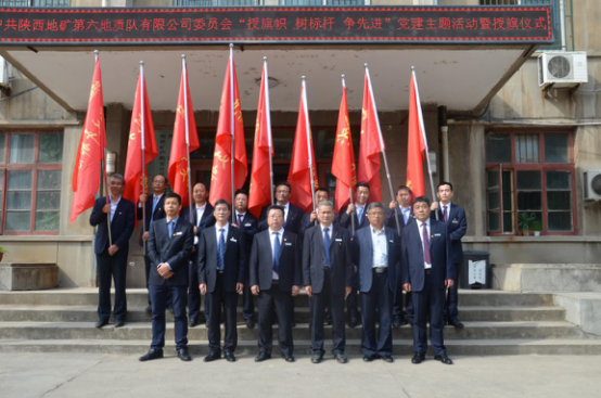 儀式上,黨委書記、執(zhí)行董事劉曉東分別向公司所屬7個黨支部、2個青年突擊隊授予“黨支部”旗幟和“青年突擊隊”旗幟。接旗后,地調所所長、黨支部書記李長壽代表7名黨支部書記、潼關礦開部青年突擊隊隊長唐升強代表青年突擊隊分別作了表態(tài)發(fā)言。