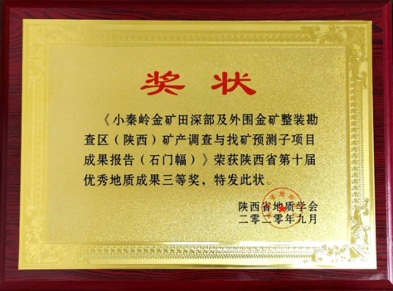 由我公司地調(diào)所編制完成的“小秦嶺金礦田深部及外圍金礦整裝勘查區(qū)(陜西)礦產(chǎn)調(diào)查找礦預(yù)測子項(xiàng)目(石門幅)成果報告”獲陜西省第十屆優(yōu)秀地質(zhì)成果三等獎;張歡歡同志撰寫的“陜西小秦嶺金礦床三位一體勘查區(qū)找礦預(yù)測地質(zhì)模型及找礦意義”獲優(yōu)秀地質(zhì)論文一等獎;李長壽同志撰寫的“陜西小秦嶺金礦田石英脈型金礦床石英熱釋光特征及其找礦意義”獲優(yōu)秀地質(zhì)論文三等獎。