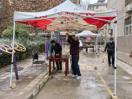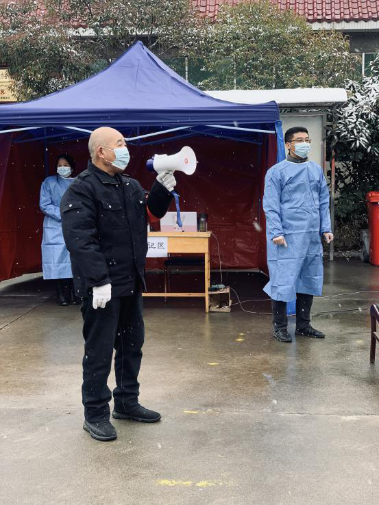 “微信運(yùn)動(dòng)幾萬(wàn)步”,確保每棟樓、每個(gè)人做核酸。受疫情影響,大家不能出門,只能待在家里,然而,六隊(duì)志愿者日行萬(wàn)步卻成為常態(tài)。代王基地設(shè)置了代東社區(qū)核酸點(diǎn),西安基地設(shè)置了明園社區(qū)核酸點(diǎn)。每次核酸檢測(cè)志愿者都要與社區(qū)人員進(jìn)行對(duì)接,協(xié)調(diào)社區(qū)共計(jì)900人左右的核酸隊(duì)伍,維護(hù)現(xiàn)場(chǎng)秩序。“12號(hào)樓一單元的同志,下樓做核酸了”、“15號(hào)樓3單元的同志,下樓做核酸了”,為防止人員聚集,造成交叉感染,院內(nèi)租住的用戶都是志愿者一樓一樓的叫下來(lái)的。代王基地院子內(nèi)一共10棟樓,360人,西安基地一共4棟樓,290人。為確保不漏一戶、不漏一人,志愿者每次都要一次次的繞著院子來(lái)回的“喊”。除此之外,志愿者要在核酸檢測(cè)人員來(lái)之前擺好核酸檢測(cè)設(shè)施,拉好警戒線,連接網(wǎng)絡(luò)專線、通電、安裝照明燈,一片都不漏的對(duì)場(chǎng)地以及進(jìn)院子的人員進(jìn)行徹底消殺。在核酸檢測(cè)結(jié)束,人員離開(kāi)場(chǎng)地后,志愿者仍然堅(jiān)守在崗位上,因?yàn)樗麄冞€要將醫(yī)用垃圾專員清理拉走,再次對(duì)場(chǎng)地及人員做一次徹底消殺。在維護(hù)核酸檢測(cè)隊(duì)伍秩序時(shí),面對(duì)不理解、抱怨聲,他們選擇用真情感染者每家每戶。