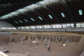 秦始皇兵馬俑博物館,是建立在兵馬俑坑原址上的遺址性博物館。被譽為“世界第八大奇跡”。通過參觀學習,大家對兩千年前這支地下大軍驚嘆不已,他們披堅執(zhí)銳,軍容嚴整,氣勢磅礴,一種神秘的魔力恍惚間會把人引入戰(zhàn)馬嘶鳴,鏖戰(zhàn)在即的歷史畫面。它不僅是中國人民、也是全人類的一份珍貴文化財富。
