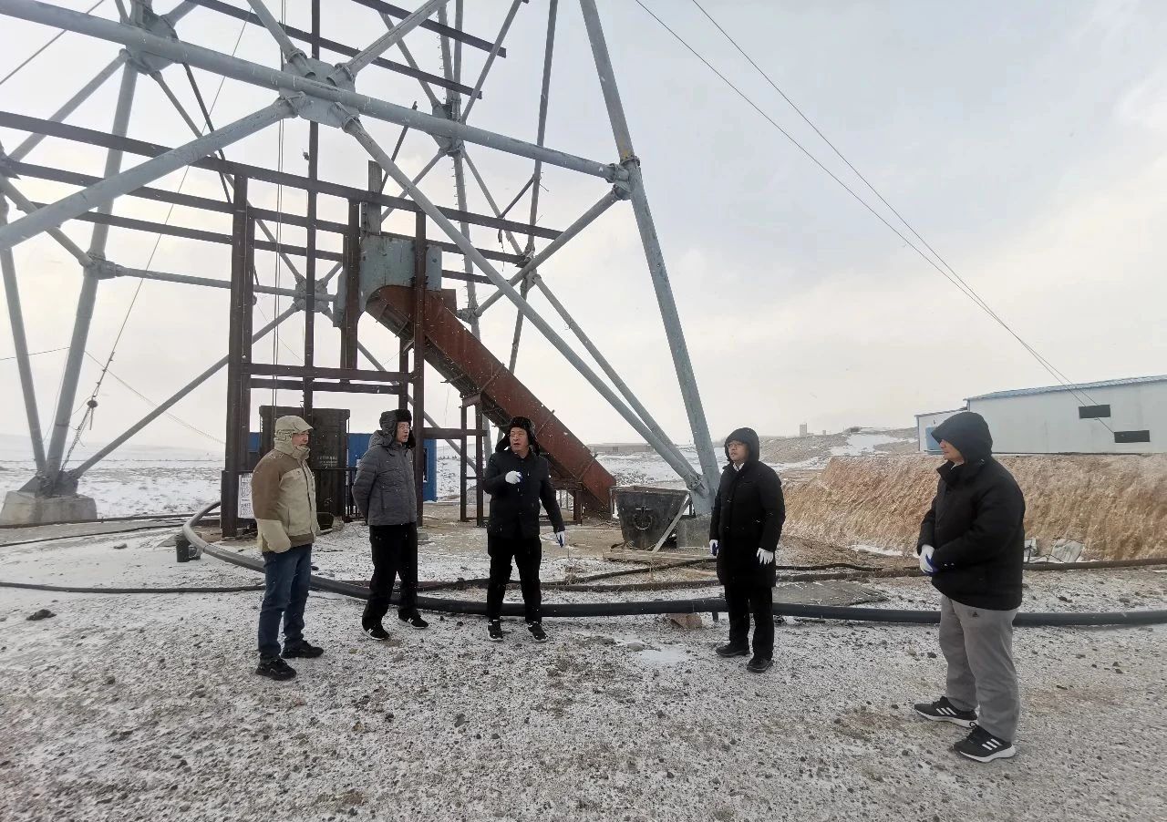 11月8日,劉勐一行查看了合資公司在旗辦公場所,隨后冒著大雪前往當(dāng)?shù)匾患疑a(chǎn)礦山企業(yè)實地考察,先后深入螢石礦山、選礦廠、尾礦庫參觀,詳細(xì)了解礦山規(guī)模、礦石品位、開采方式、選礦工藝、尾礦處理等。